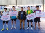 FOTO ISTIMEWA KORANLOMBOK.ID Tim ISA Lombok FC foto bersama di podium sembari mengangkat trofi juara.