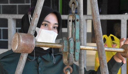 FOTO ISTIMEWA KORANLOMBOK.ID Seorang petugas kesehatan saat mengecek alat timbang bayi untuk Posyandu, beberapa waktu lalu di wilayah Lombok.