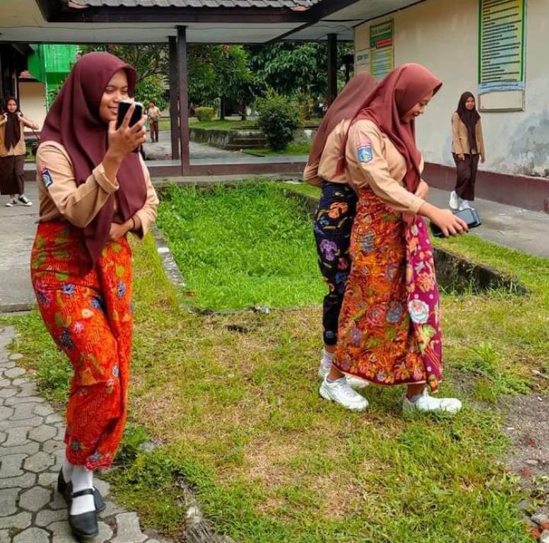 FOTO ISTIMEWA KORANLOMBOK.ID Sejumlah siswa di salah satu SMA di Lombok Tengah pada Hari Jumat menggunakan bendang.