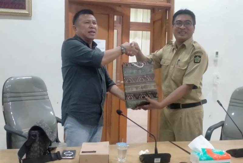 FOTO ISTIMEWA KORANLOMBOK.ID Sekwan DPRD Lombok Tengah, Suhadi Kana bersalaman dengan Kepala Bagian Umum dan Keuangan DPRD Kulon Progo, Bambang Susilo, Rabu (6/2/2024).