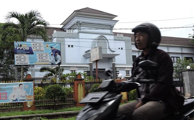 FOTO ANIS PRABOWO JURNALIS KORANLOMBOK.ID / Seorang sedang melintas di depan SMPN 1 Praya.