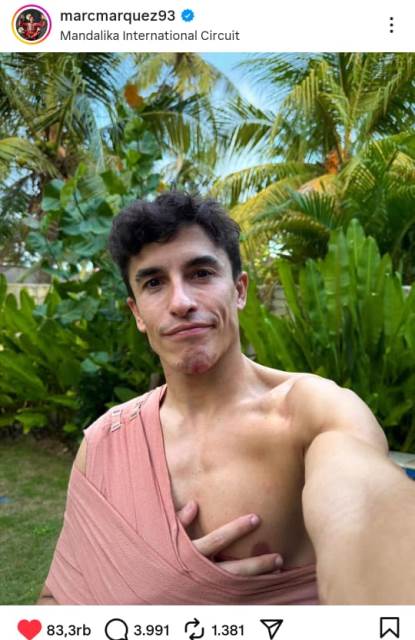Sementara itu di akun sosial media instagram pribadinya, Marc Marquez berfoto dengan kondisi lengannya dibebat oleh perban. Marc menuliskan sejumlah pesan kepada penggemarnya.