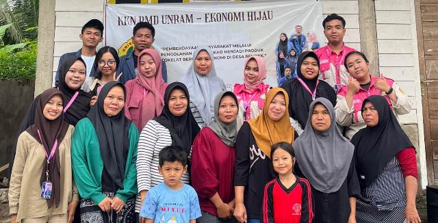 FOTO ISTIMEWA / Foto bersama usai kegiatan sosialisasi pengolahan biji kakao oleh mahasiswa KKN PMD Unram di Desa Rempek, Lombok Utara, Kamis, 22 Januari 2026.
